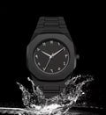 Make a statement with simplicity. This black quartz watch features a clean two-hand display with classic Arabic numerals, wrapped in a scratch-resistant octagon case. The polycarbonate strap and hidden clasp offer discreet comfort, while its water resistance makes it perfect for everyday wear. A blend of tradition and modern edge—this timepiece is a subtle show of strength and taste.