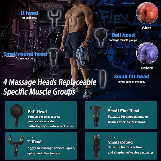 Relief in minutes! The Muscle Massage Gun FH-820 is exactly what I needed after long gym sessions. The 4 head options really target different areas, and the power is impressive for such a compact tool!